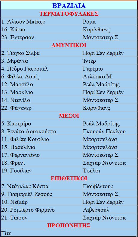 1η – 2η θέση: 1η Βραζιλία – 2η Ελβετία (2,75)