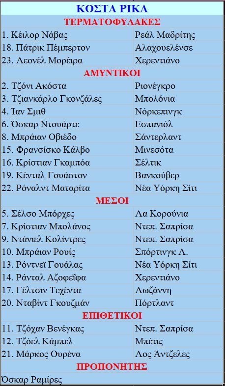 Κόστα Ρίκα: Μεταξύ 2-3 (3,00)