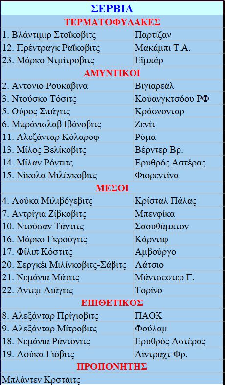 Να μην προκριθεί από τον όμιλο: Σερβία (1,66)