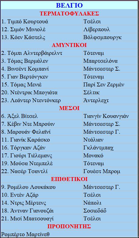 Βέλγιο: Ντρις Μέρτενς (8,00)