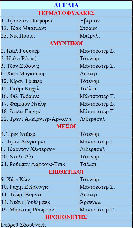 Αγγλία: Μεταξύ 5-6 (2,75)