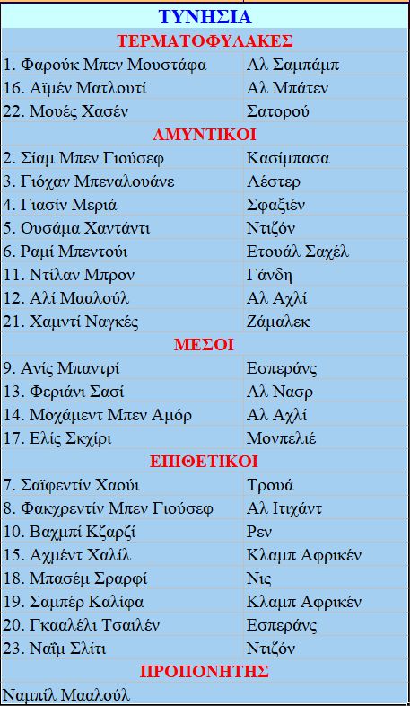 Τυνησία: Μεταξύ 2-3 (2,60)
