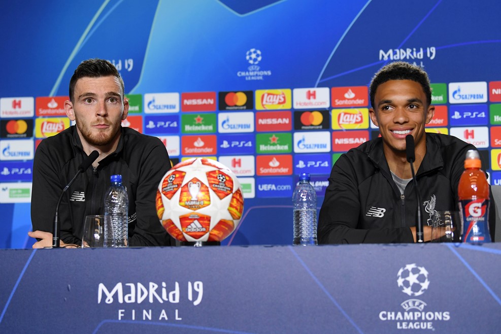 Λίγο πριν από τον Κλοπ, στη συνέντευξη Τύπου έπαιξαν μπάλα οι δύο ακραίοι μπακ της Λίβερπουλ, ο Άντι Ρόμπερτσον και ο Τρεντ Αλεξάντερ – Άρνολντ. Οι δύο παίκτες εκθείασαν με τη σειρά τους την Τότεναμ και τους επιθετικούς που θα κληθούν να σταματήσουν (Λούκας Μόουρα, Κέιν, Σον), δήλωσαν ότι απολαμβάνουν την… κόντρα τους στις ασίστ και υποσχέθηκαν να κάνουν τα πάντα για την κατάκτηση του Τσάμπιονς Λιγκ. Για τον Κλοπ, για τους οπαδούς και όλο τον σύλλογο.